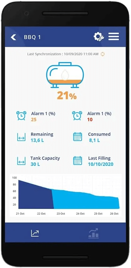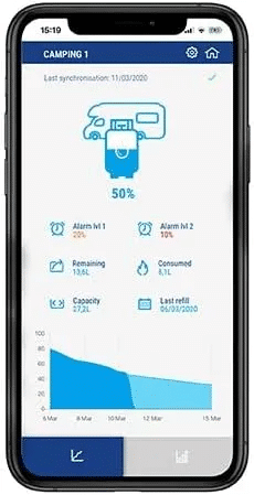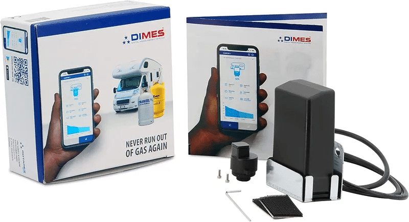 Rotarex Dimes Bluetooth fjernkontrollindikator for Alugas påfyllbare Travel Mate gassflasker med multivalve. Overvåk fyllingsnivået til sjølvfyllarflaskene på ein enkel måte frå smarttelefonen. Kompatibel med alle etterfyllbare gassflasker med SRG multivalve, enten det er stål, aluminium eller kompositt, f.eks. CAMPKO, Alugas, Gaslow. Drivstoffmålaren på multivalve byttast ut med ein ny sendar ved hjelp av den medfølgande umbrakonøkkelen. Denne sendaren overfører fyllingsnivået direkte til smarttelefonen, eller nettbrettet via WAVE Box ved hjelp av Bluetooth.
