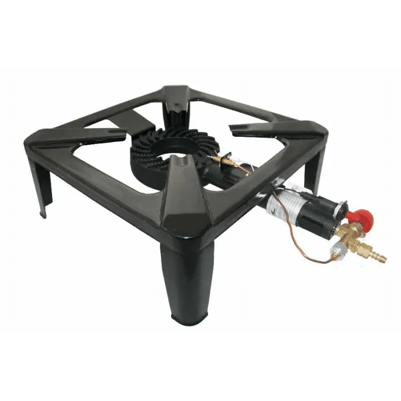Krabbekokaren som har alt. 4 bein som gjere at den passar for større kjeler og panner, og står stødig. Krabbekokaren leverast med tennsikring, noko som gjere at den er godkjent for innandørs bruk! (Kun ved 30 mBar!) Enkel justering av effekt med nålventil og enkel montering.