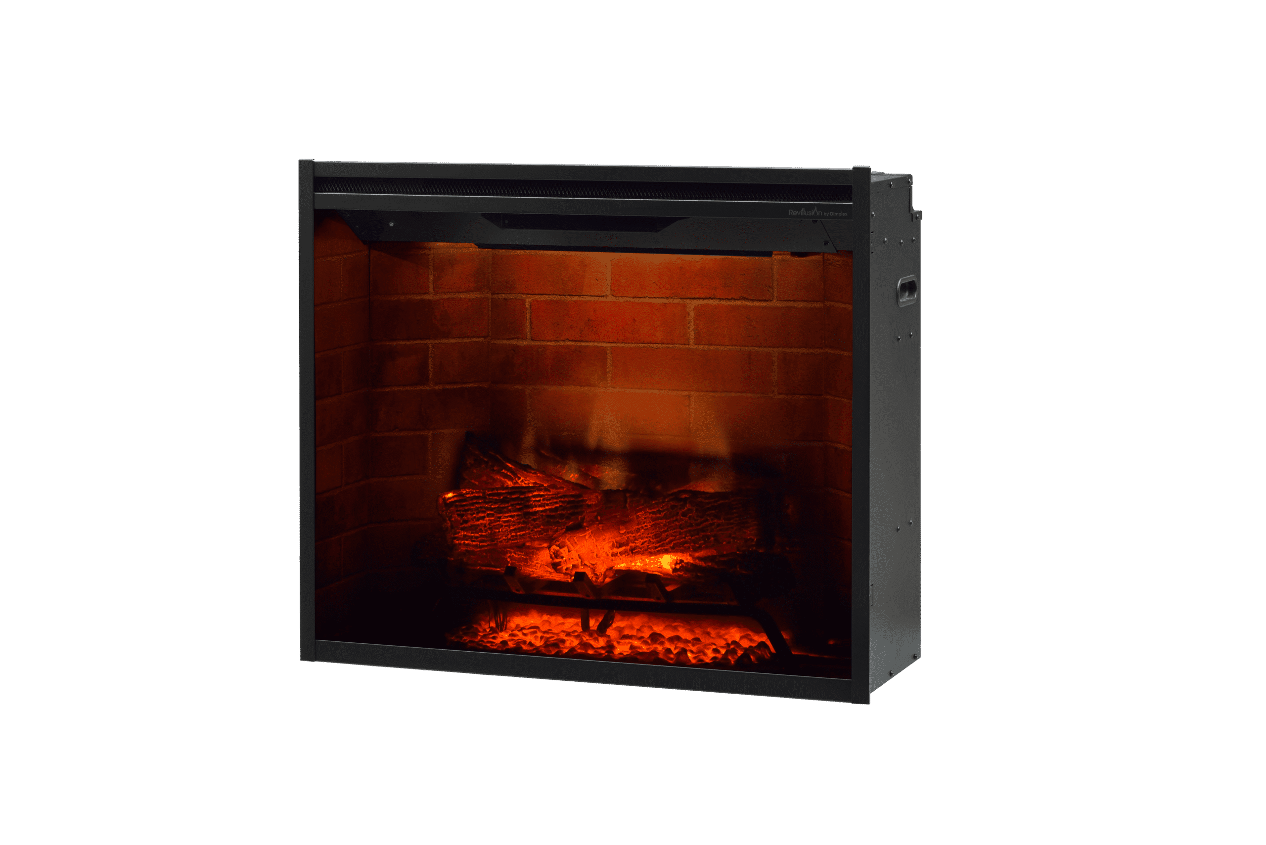 Revillusion® med Fabers nyeste flammeteknologi er en helt ny variant av elektriske peiser. Peisen har bakgrunn med mursteins-finish og godt innsyn til de realistiske flammene. Flammene stiger opp uten refleksjon fra de naturtro, gnistrende og glødende vedkubbene midt i peisen. Farge og lysstyrke kan justeres på flere måter med den brukervennlige fjernkontrollen. Lysbildet kan tilpasses etter ønsket stemning, stil og lyset ellers i rommet.