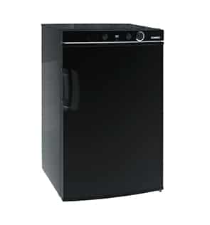 Ventus 100 i svart er eit kompakt og praktisk gasskjøleskap egna for hytter med litt mindre plass. Skapet har også 10 liters fryseboks.