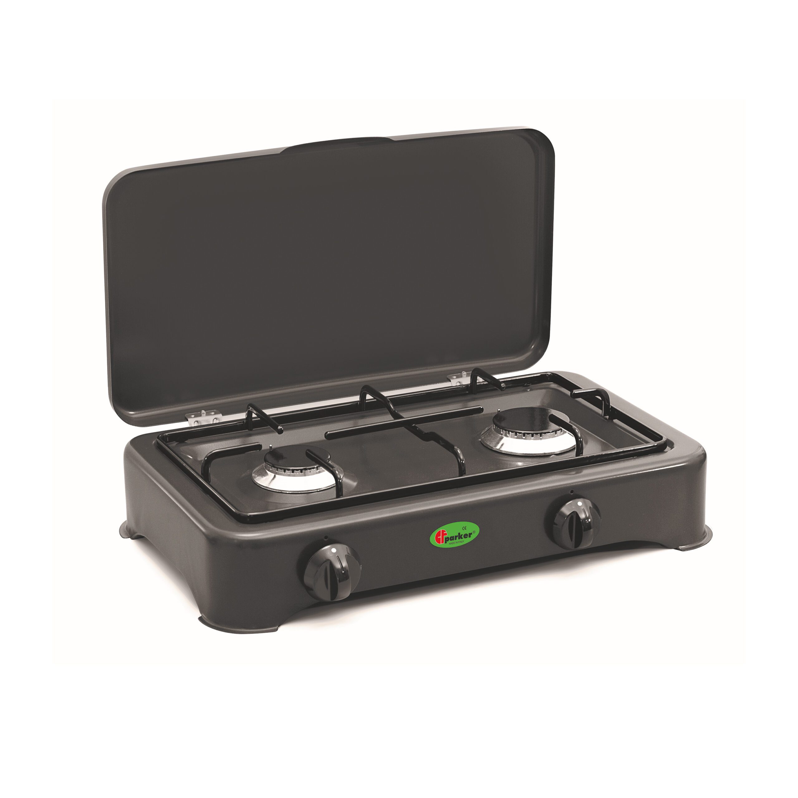 Parker er et frittstående emaljert kokeapparat med 2 bluss for plassering på benk.