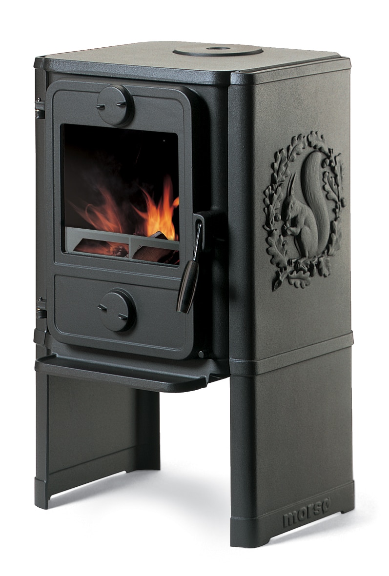 Ovnane er også utstyrt med ei glasdør slik at du kan sjå inn til flammane. Men alt har ikkje endra seg, til tross for den nye teknologien er dei flotte detaljane på plass, så du finn fortsatt Morsø’s karakteriske ekorn på sidene.