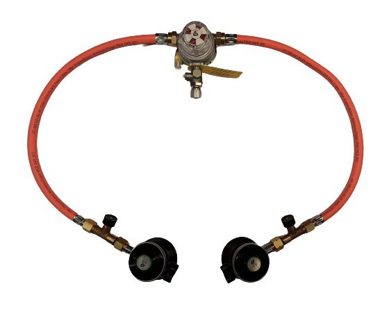 Kompakt automatisk omskiftar med integrert Annex D regulator for campingvogn og bubil med testpoint. Maksimalt 2 flasker, 1 flaske i drift og 1 flaske i reserve. Byter til reserveflaske når trykket fell under 0,7 bar. Indikator om flaske er tom (TRYKKTOM).