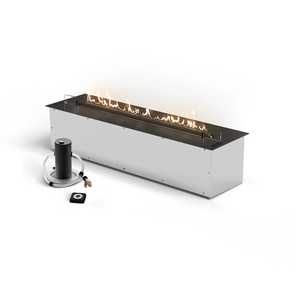 Automatisk bioetanol innsats med fjernkontroll, sikkerheitssensorar og BEV-teknologi. Opptil 11 timers brenntid per påfylling.