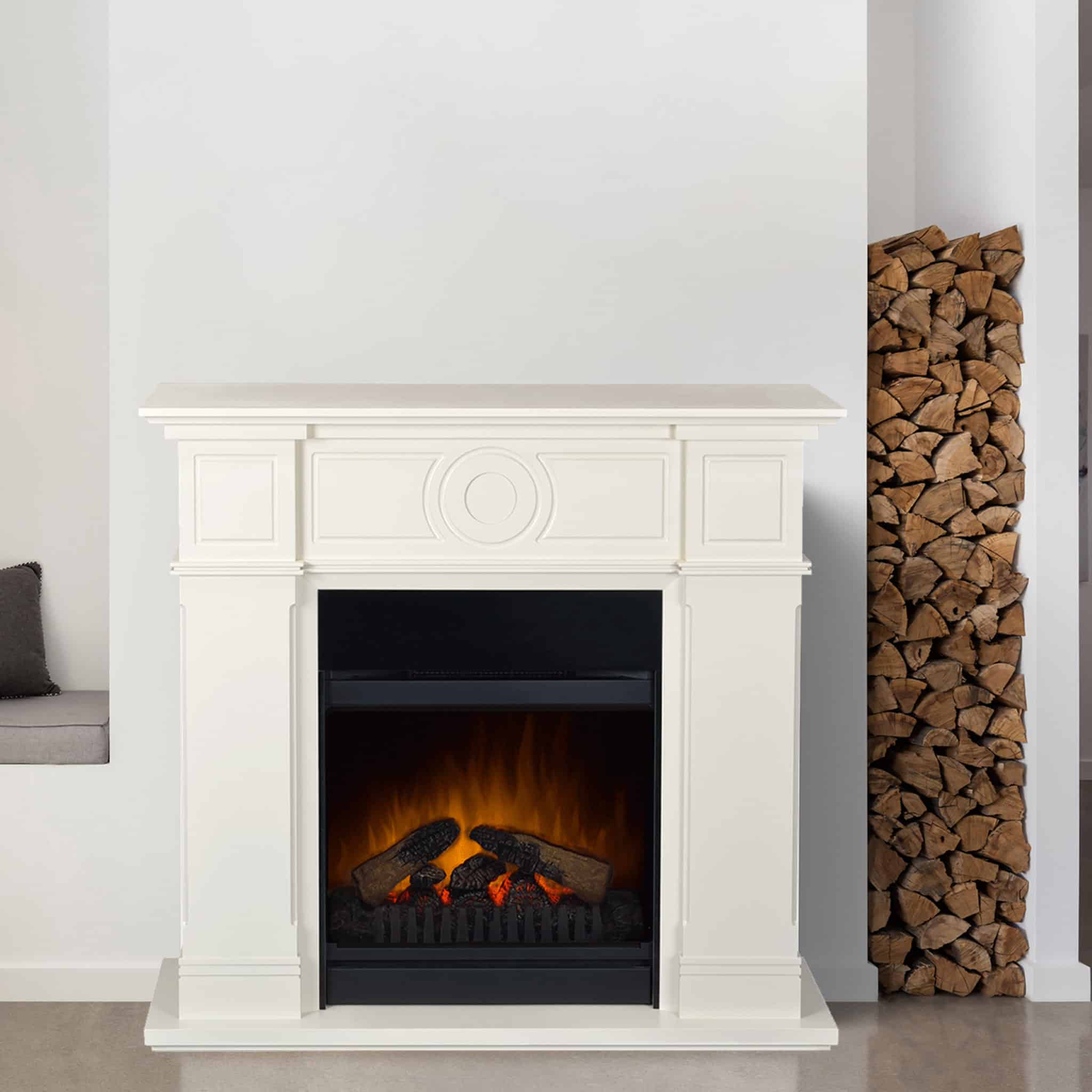 Den elektriske peisen leveres med flammeteknologien i Optiflame, som gir et realistisk og naturtro flammebilde. Peisen har en varmeeffekt på 1,5 kW, som du kontrollerer med fjernkontrollen som følger med. Brennkammeret er dekorert med vedkubber, komplementert av LED-lys som gir inntrykk av at vedkubbene faktisk brenner.