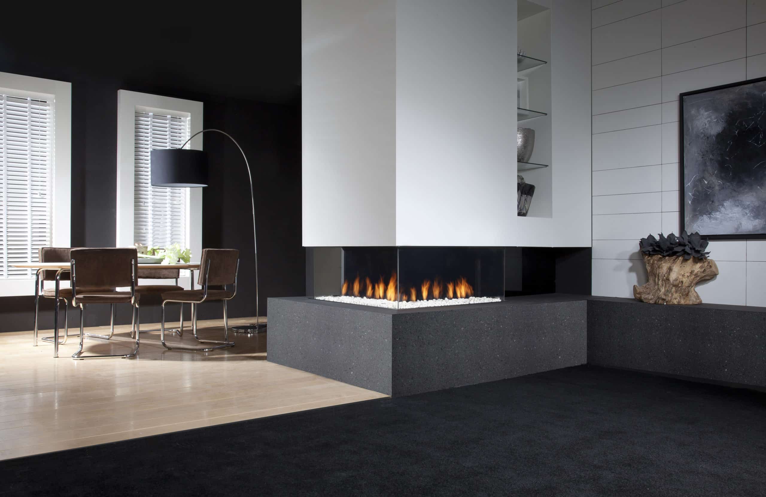 Faber Respect OC (outside corner) er en unik hjørnepeis for deg som ønsker et blikkfang i hjemmet. Peisen er designet med fokus på et fantastisk flammebilde, med store glassflater og usynlige kanter. Peisinnsatsen integreres rundt et hjørne, og det brede flammebildet blir dermed synlig fra flere rom. En peis som dette gir større romfølelse.