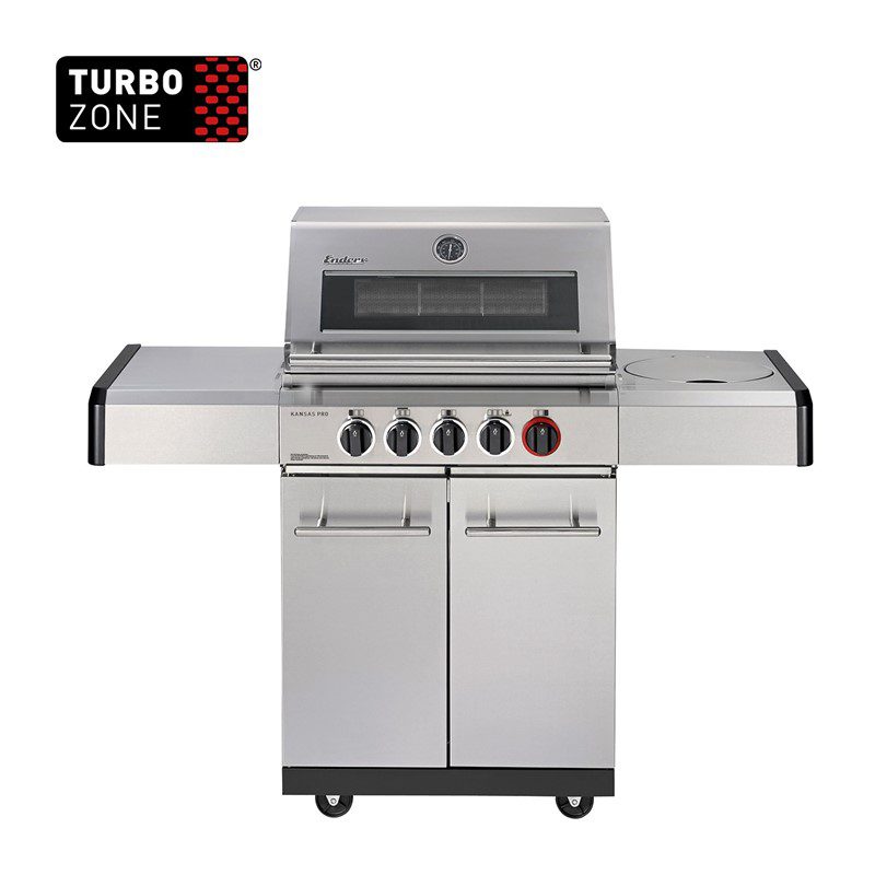 Med den nye Kansas Pro-serien kan du virkelig skru opp varmen. HEAT RANGE-brenner designet sørger for ideell varmefordeling over hele grillristen, og vil begeistre deg med lav varme-tilberedning ved konstant 80ºC eller høy temperatur opp til 300ºC. Flere toppfunksjoner finnes i gassgrill-serien i Kansas Pro: Rackstandarden SWITCH GRID gir god plass for grillkreasjonene under det solide lokket som, pizza sten, stekepanne, kyllingholder og biffrist. Etter at du er ferdig med grilling på din Kansas Pro, vil du finne ut at rengjøring av grillen din er like enkel og ukomplisert som det er raskt ved å bruke SIMPLE CLEAN-systemet utviklet av Enders. Gassflasken kan oppbevares i skapen under grilling.
