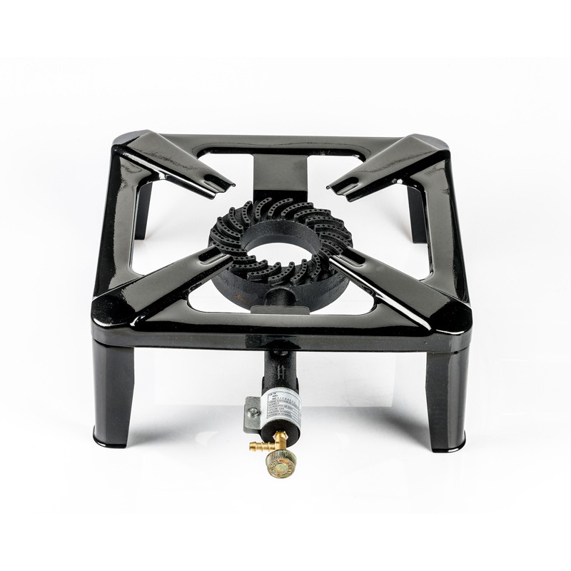 Krabbekokeren som har alt. 4 ben som gjør at den passer for større kjeler og panner og står stødig. Enkel justering av effekten med nålventil og enkel montering.
