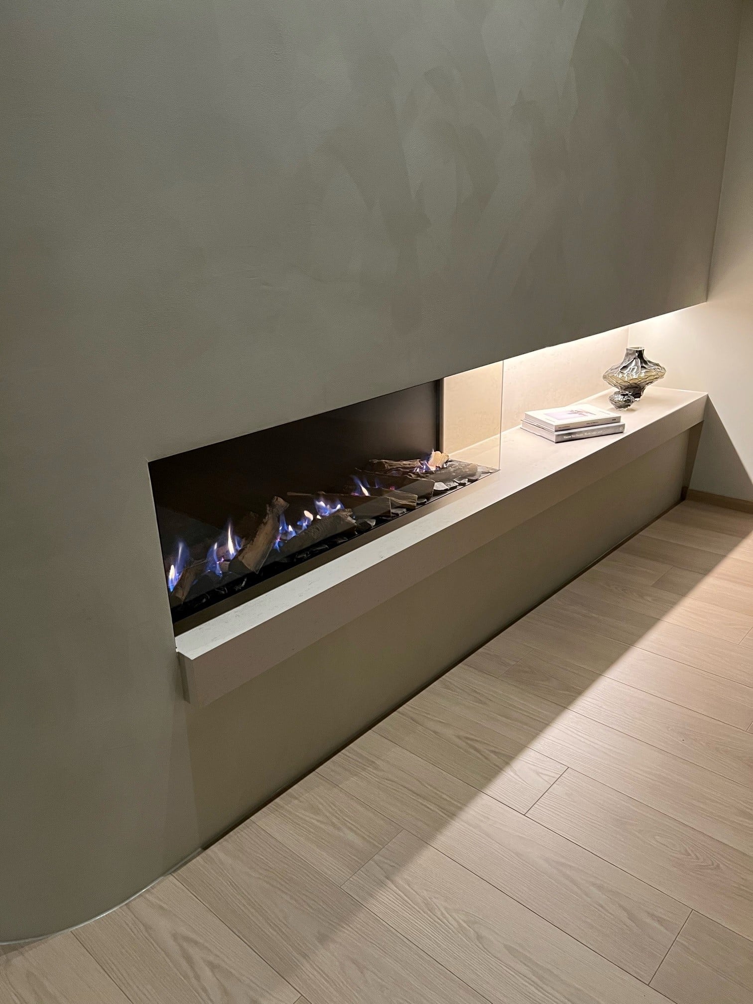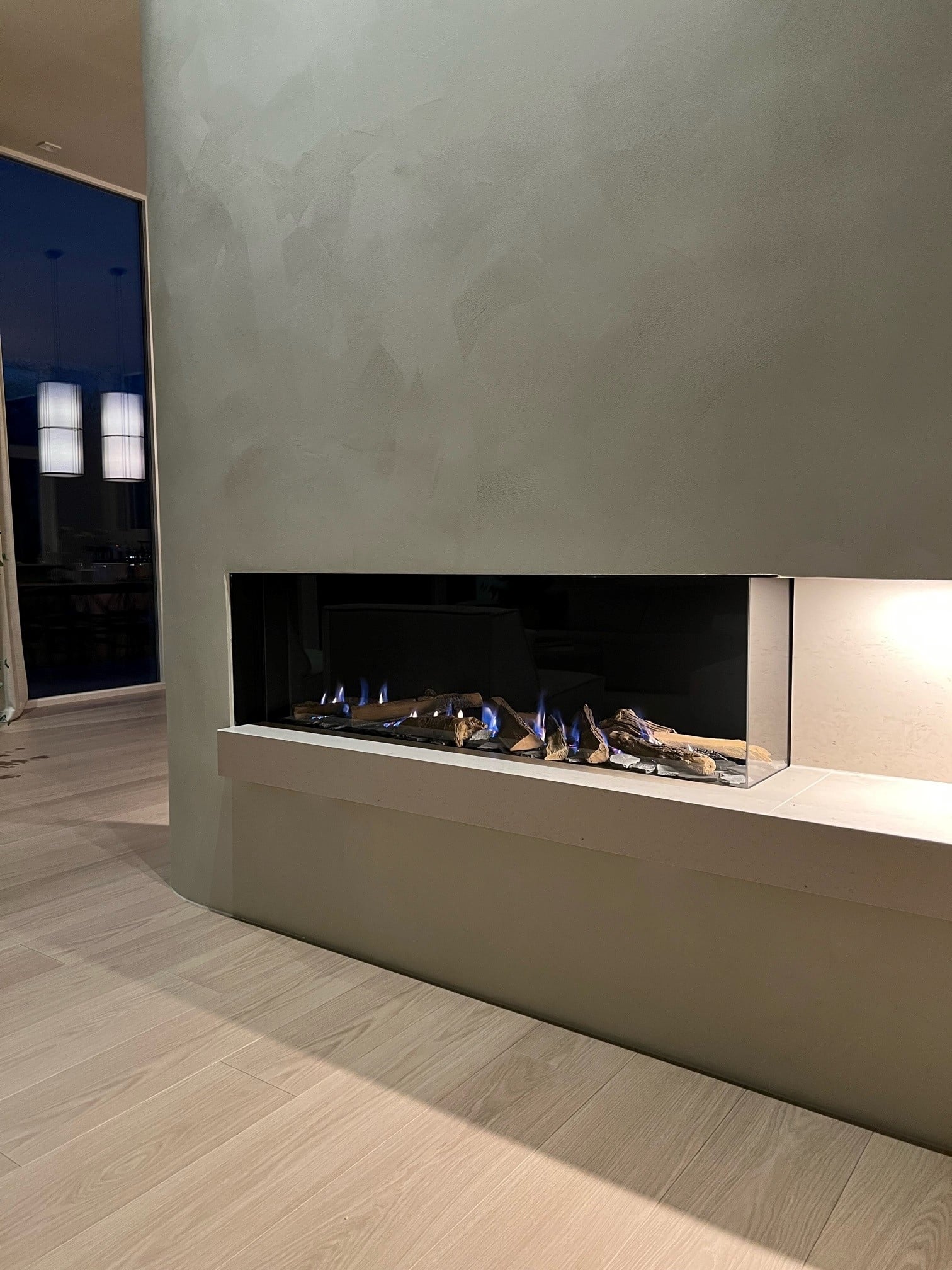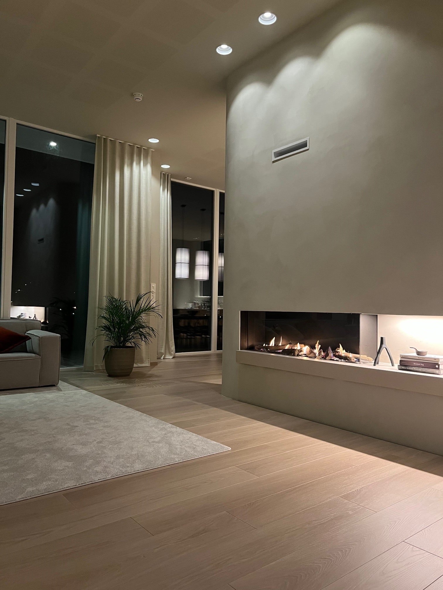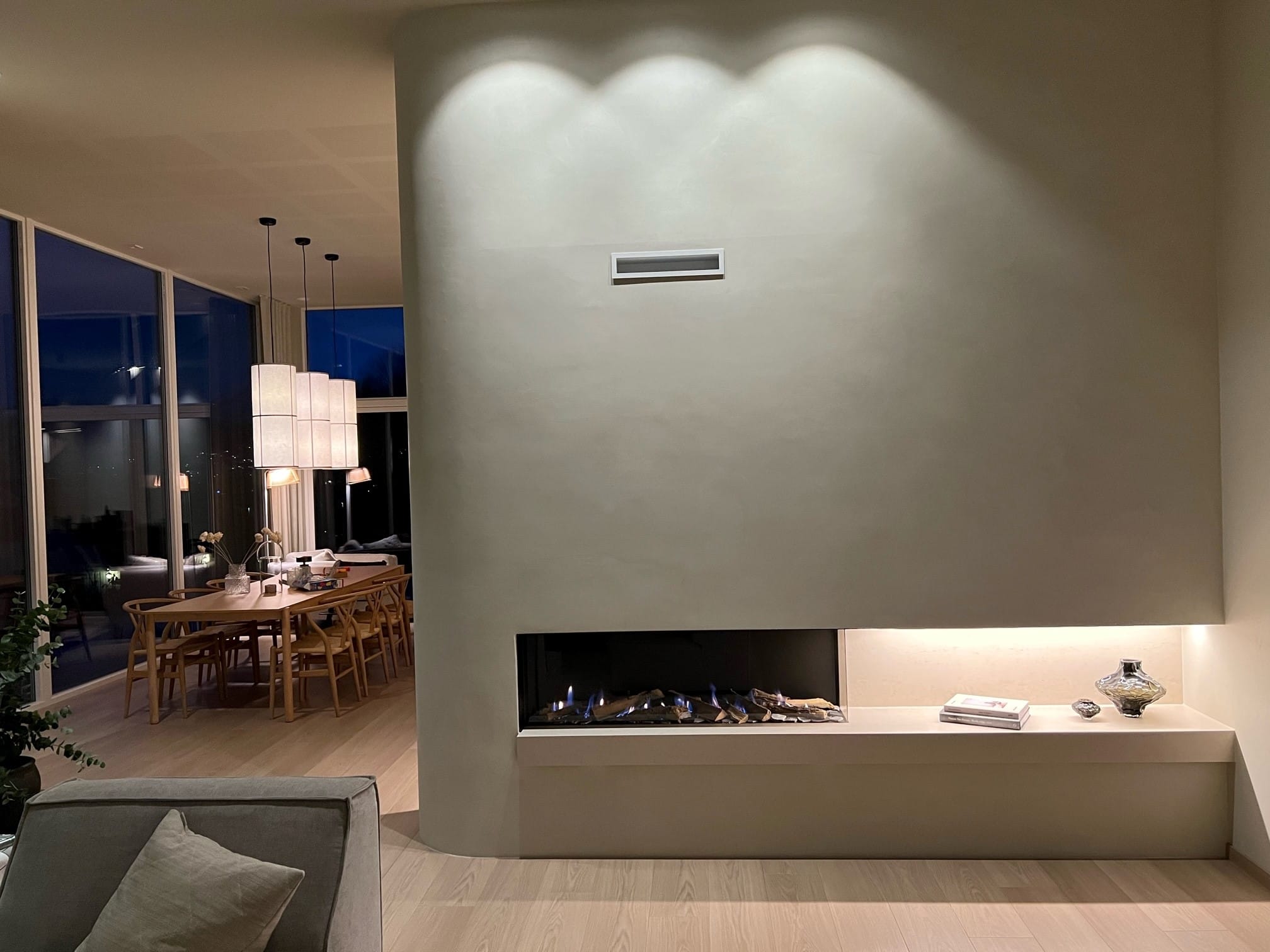 Honeywell-styringen krever 230V, så dette må legges opp i peiskassen.