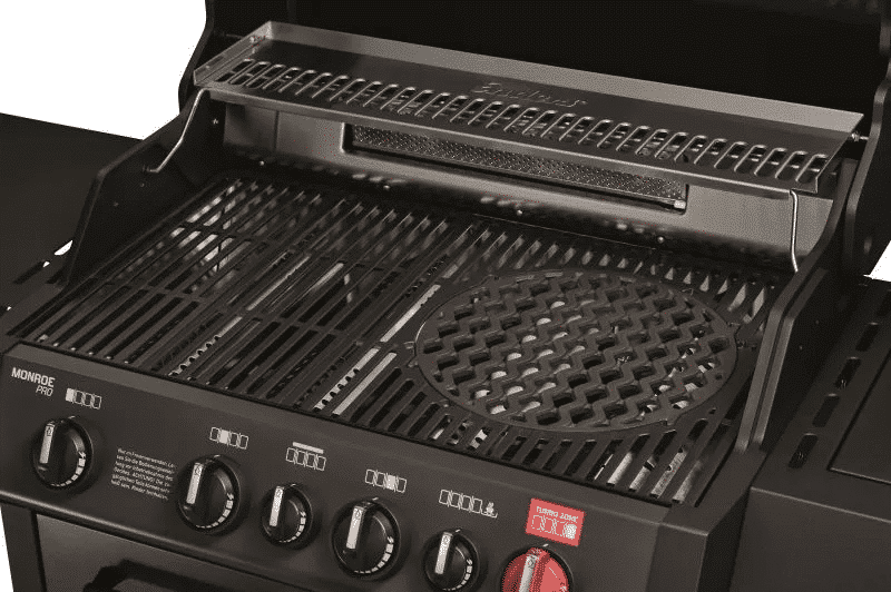 Endelig en gassgrill hvor man kan lage saftige og utmerkede biffer takket være TURBO-ZONE. TURBO-ZONE er lett gjenkjennelig med den røde bryteren. Fordi en godt tilberedt biff trenger maksimal temperatur med en gang slik at alle smakene forblir inne i kjøttet. TURBO-ZONE er enkel å bruke – Lynraskt fra laveste til høyeste temperatur. Bare vri på den røde bryteren og TURBO-ZONE reagerer umiddelbart. Med maksimal temperatur (800ºC) skaper du en stekehinne på kjøttet så det forblir saftigere og mer smakfullt. Grilling i forskjellige varmesoner muliggjør et perfekt resultat for enhver type kjøtt. TURBO-ZONE bruker ikke mer gass enn konvensjonelle grillbrennere. Kansas Pro,Monroe Pro og Boston Black Turbo-serien er utstyrt med TURBO-ZONE.